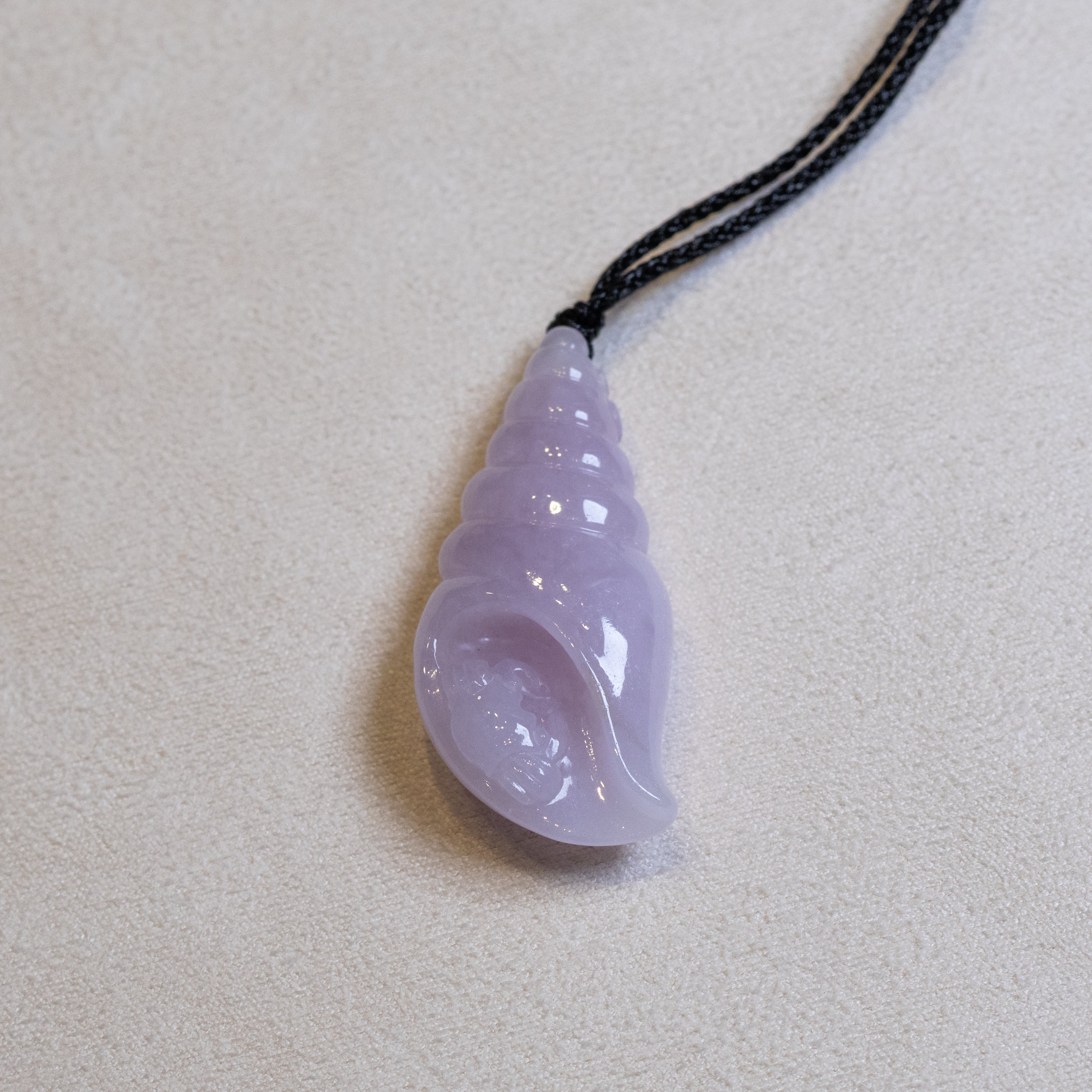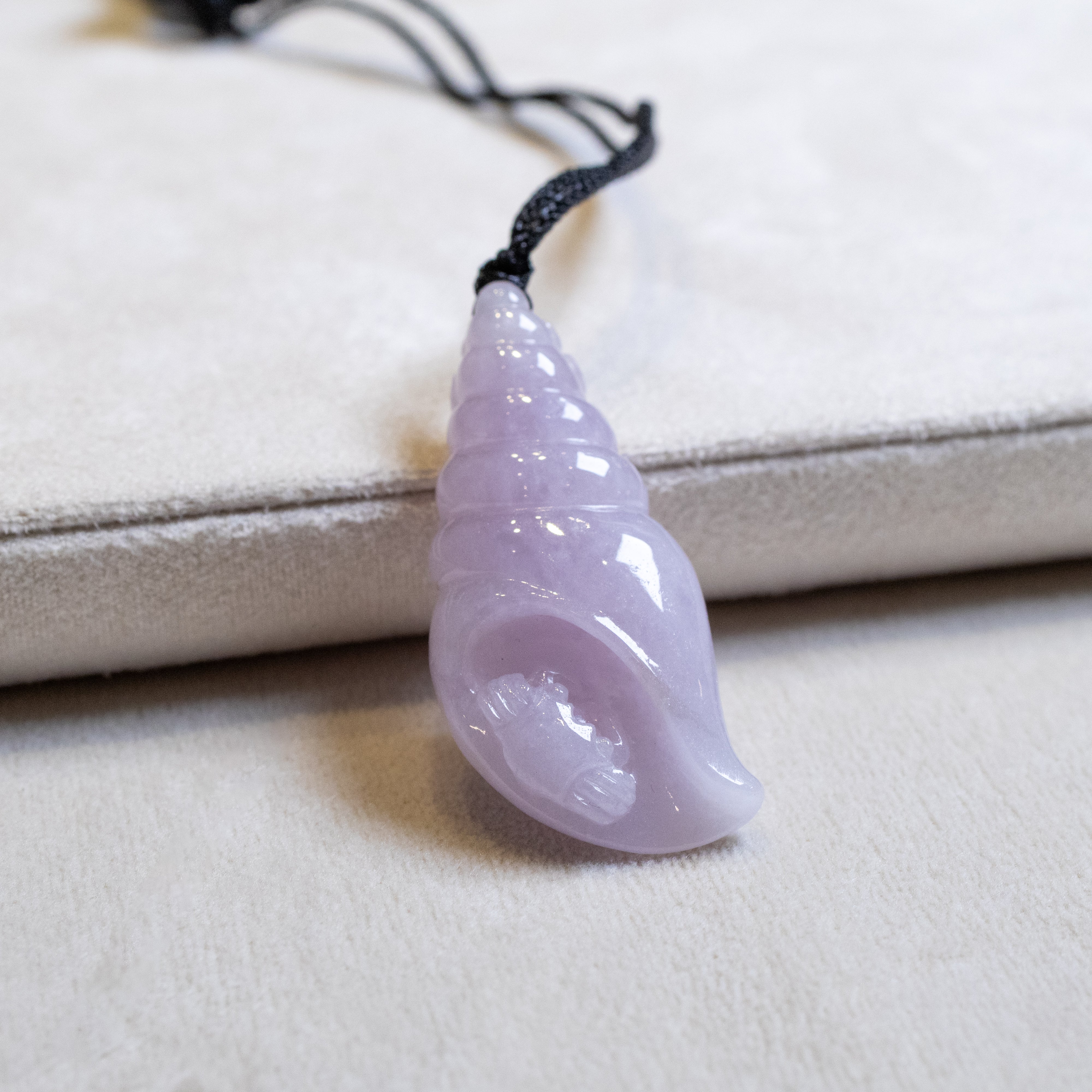 ✅This exquisite ocean-inspired carved sea shell jade pendant in intense purple color is crafted from 100% natural, untreated Burmese jadeite, handcrafted in Hong Kong. Perfect for moms, wives, fiancées, or friends, it makes a meaningful gift for Mother’s Day, Valentine’s Day, anniversaries, birthdays, or any special occasion. Measuring 54.6 mm in total length with a jade size of 19.5 mm in width x 11 mm in thickness, this unique pendant combines elegance and natural beauty.