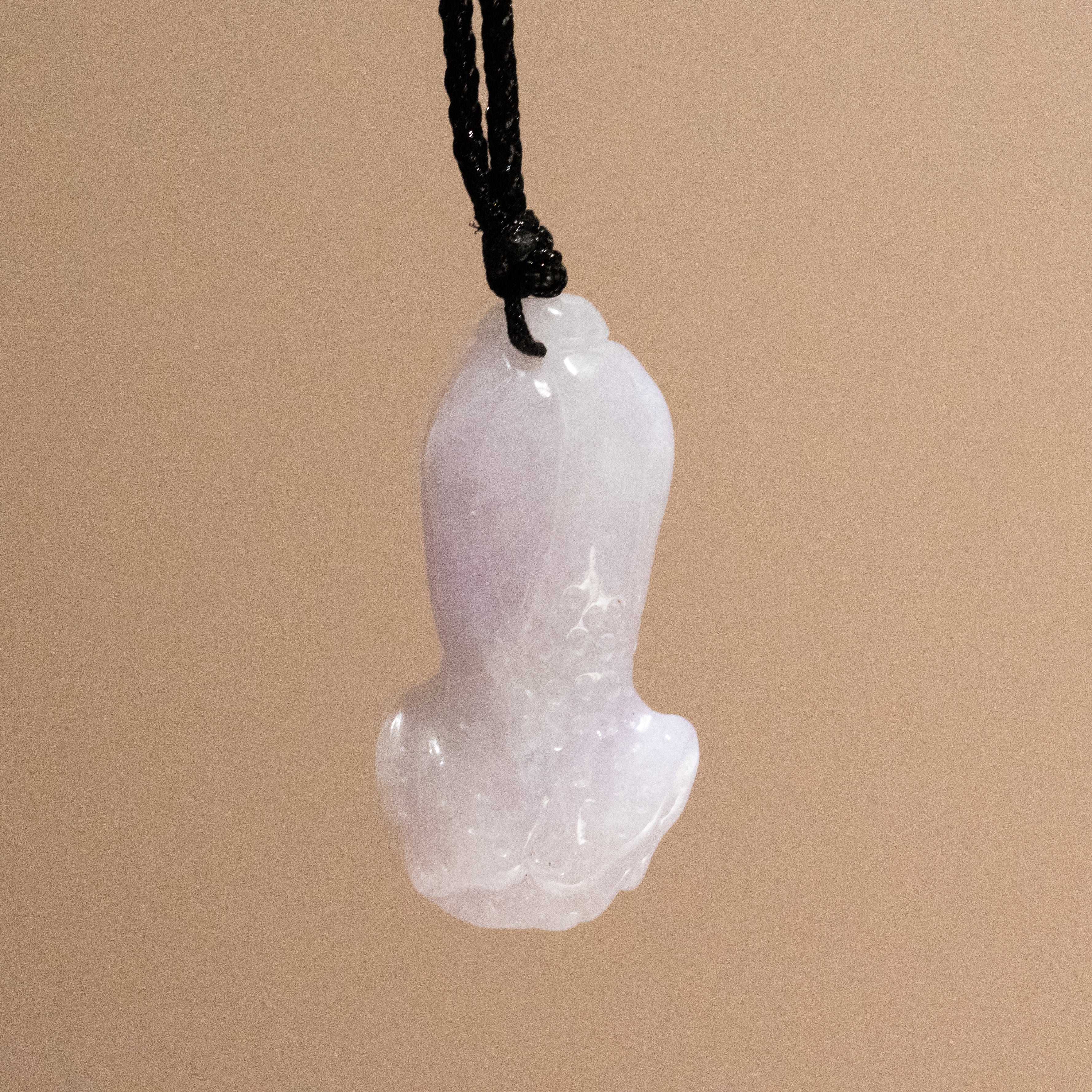 This exquisite handcrafted purple jadeite cabbage (白菜, báicài) pendant is a profound symbol of artisan beauty and cultural heritage. The pendant features meticulous carving from a single piece of jadeite, with stunning gradient purple hues that transition from deep violet to soft lavender for a sense of serenity and creativity. An adjustable black cord offers a perfect, versatile fit for this timeless piece of wearable art.