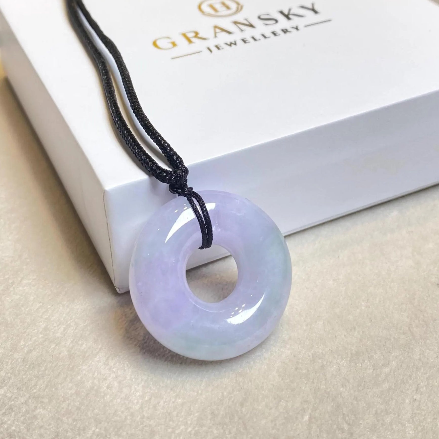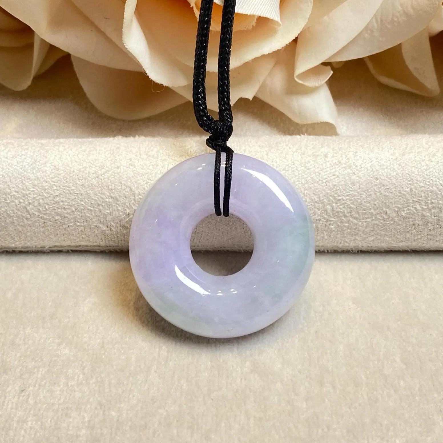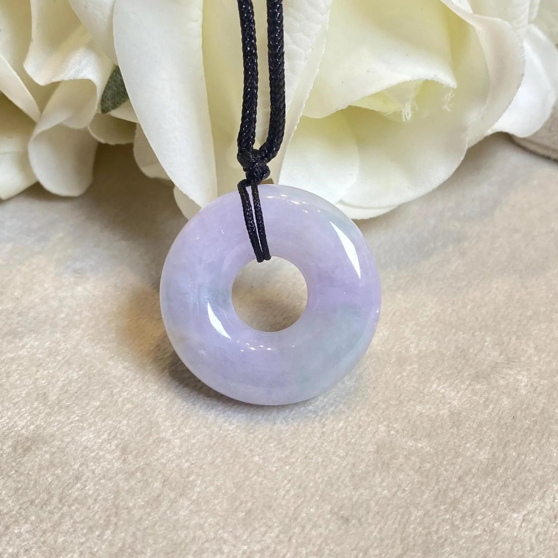 Purple Jade Round Donut Pendant 29.5mm - Calming Gemstone