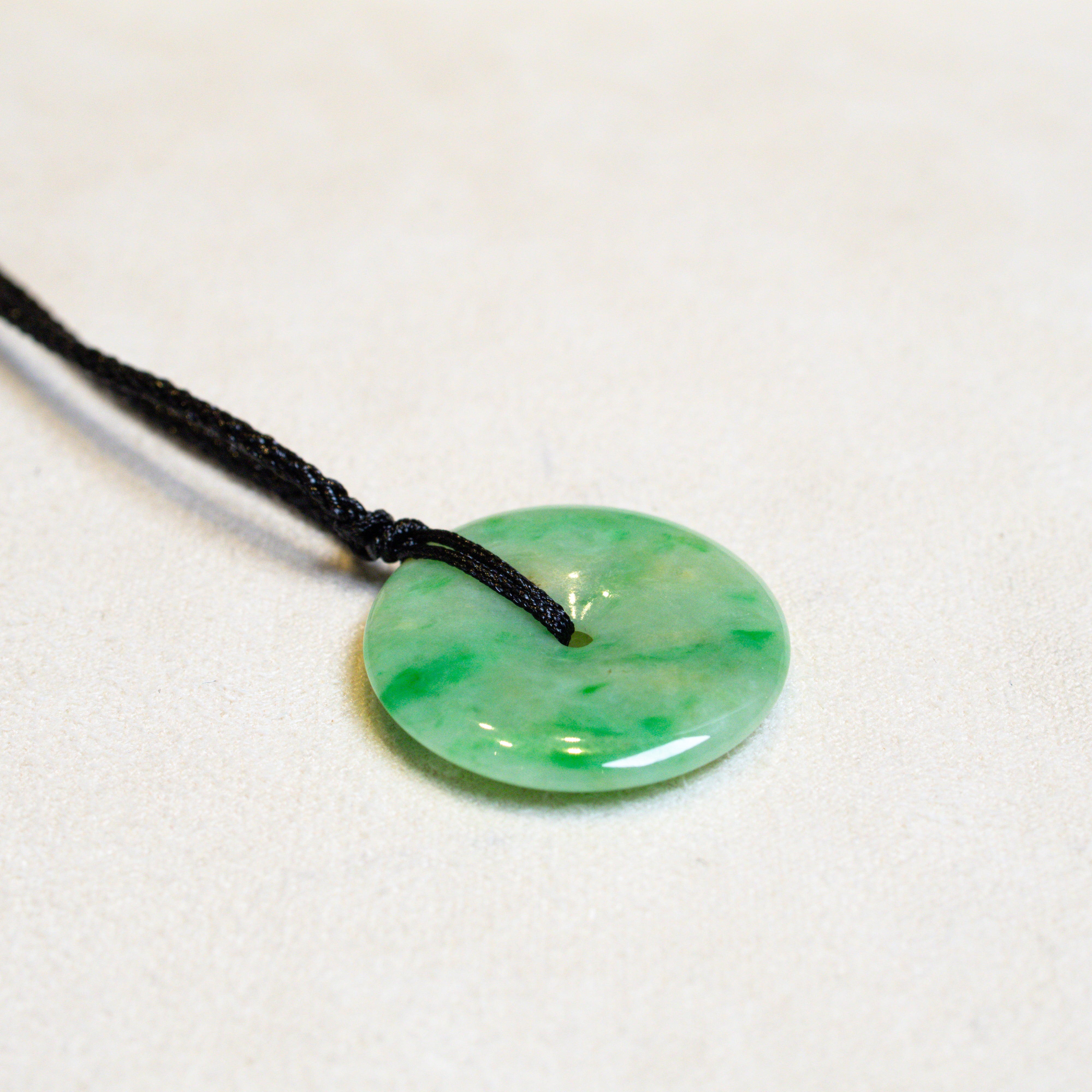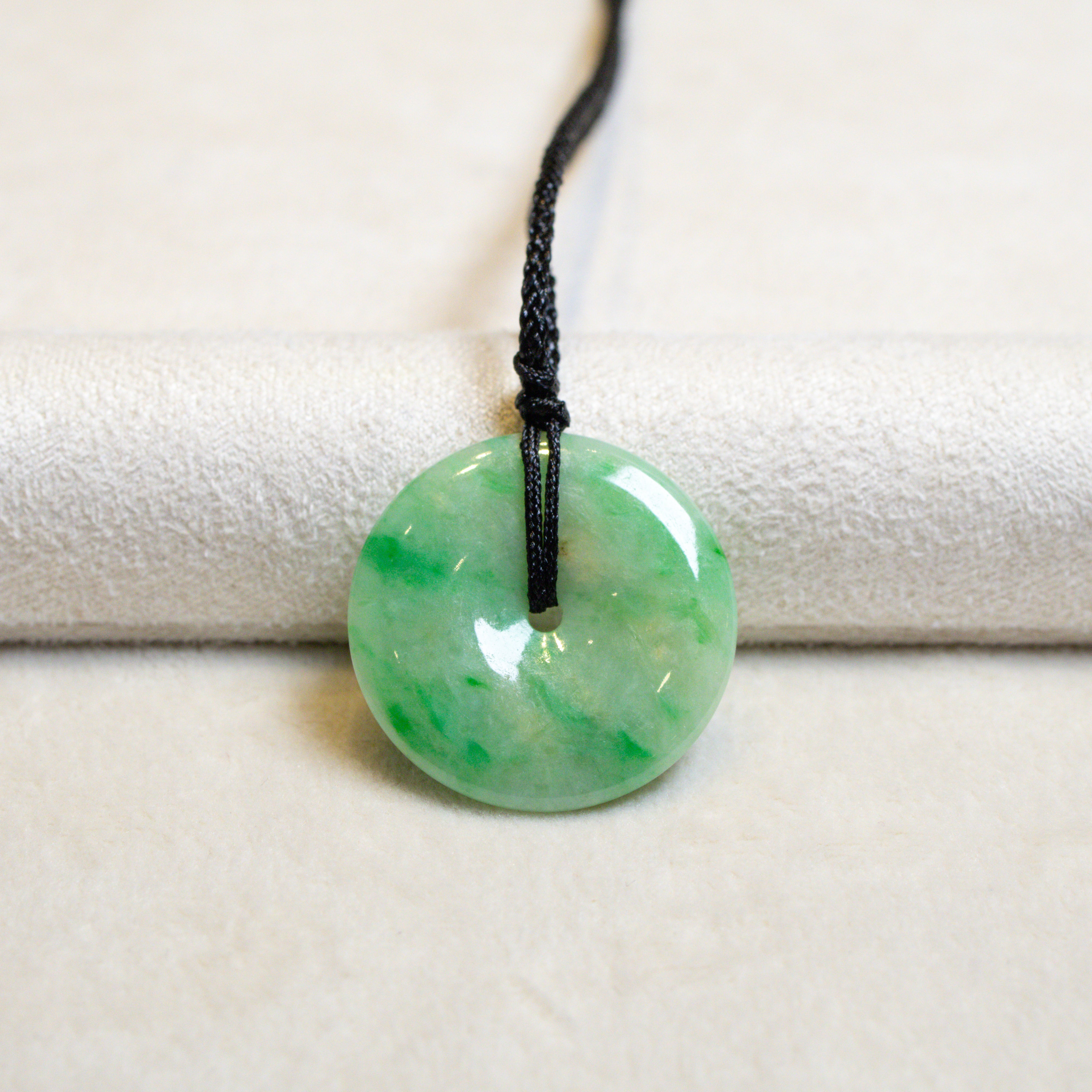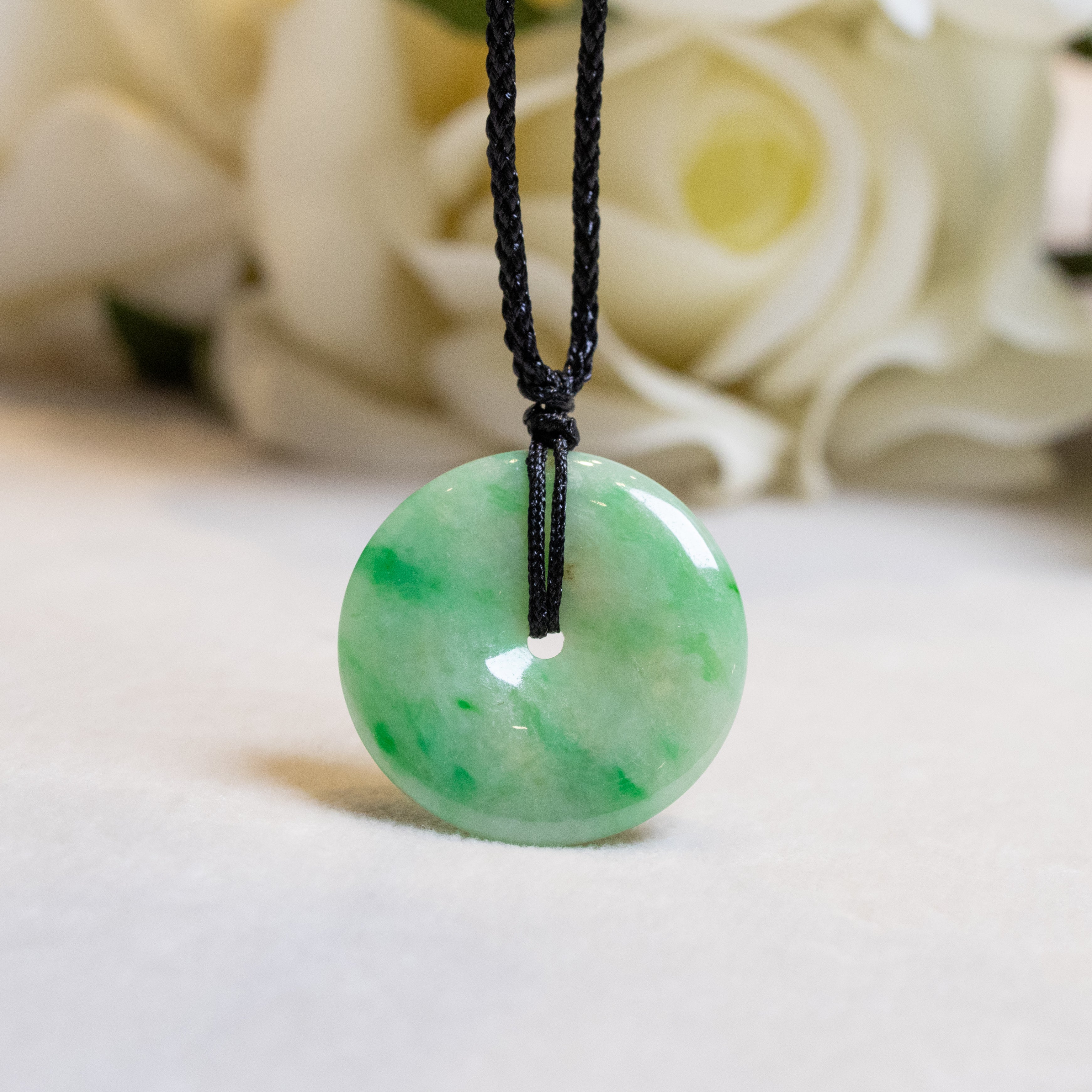 Natural Apple Green Jade Disc Pendant 23.4mm Round Necklace - Amulet for Protection & Harmony