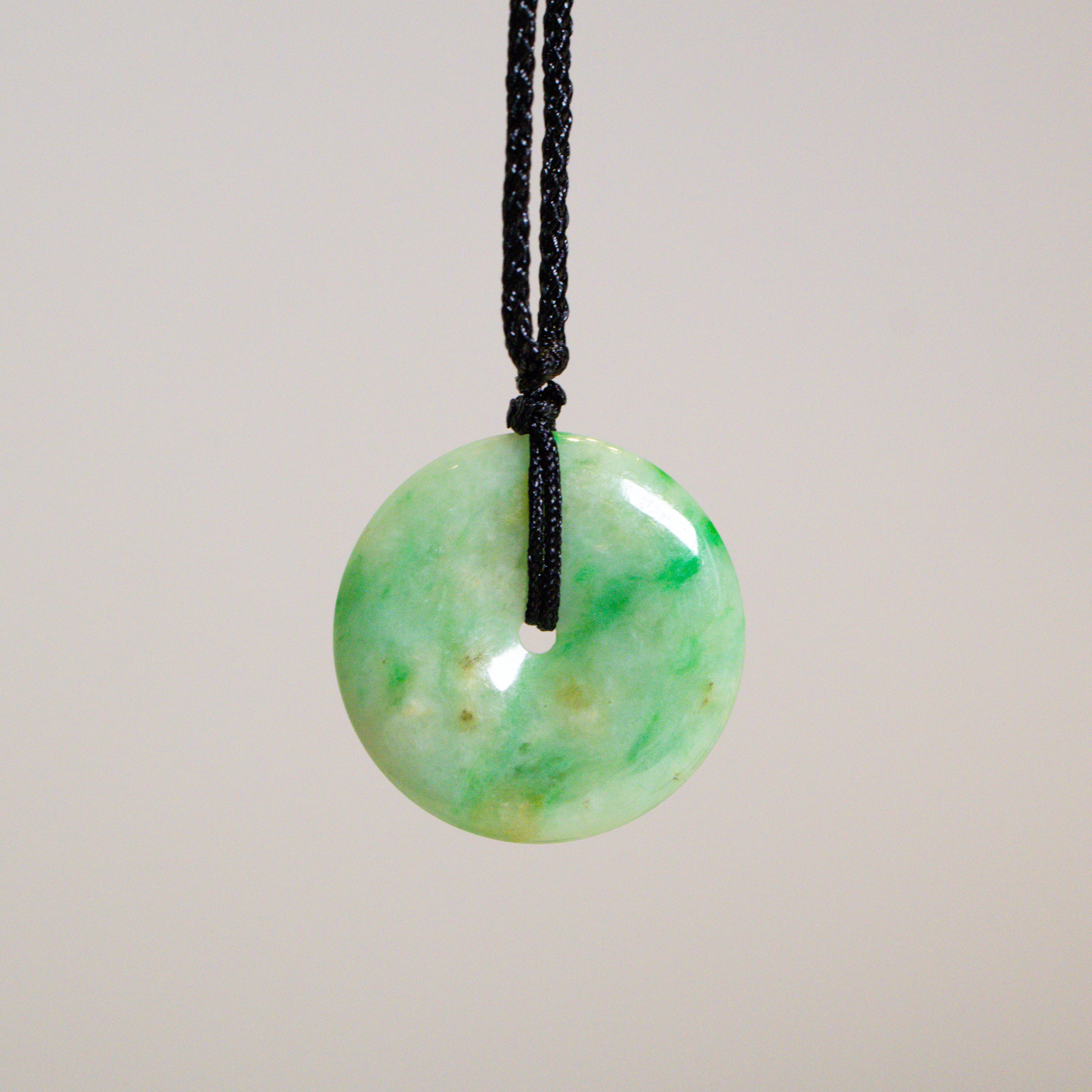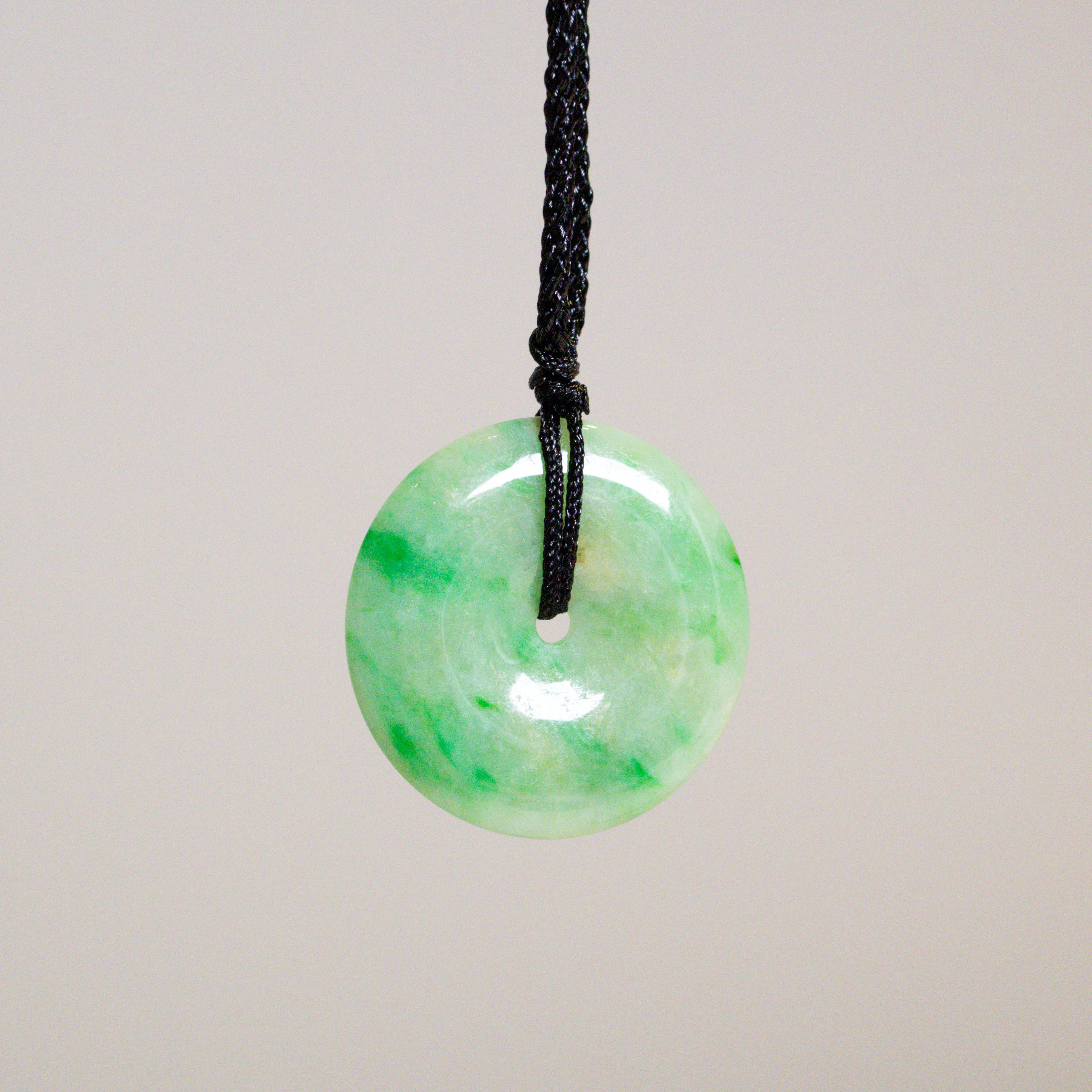 ✅This beautifully crafted pendant features a round donut shape in bright apple green jade, measuring 23.4mm in width with a refined thickness of 3.7mm. Its captivating color distribution transitions smoothly across the piece, showcasing the natural beauty of fine jade. Renowned for its calming and protective properties, this jade pendant promotes harmony and balance, making it an elegant accessory for daily wear. More than just jewelry, it serves as a meaningful reminder of mindfulness and spiritual connection, making it a thoughtful gift for someone you cherish.