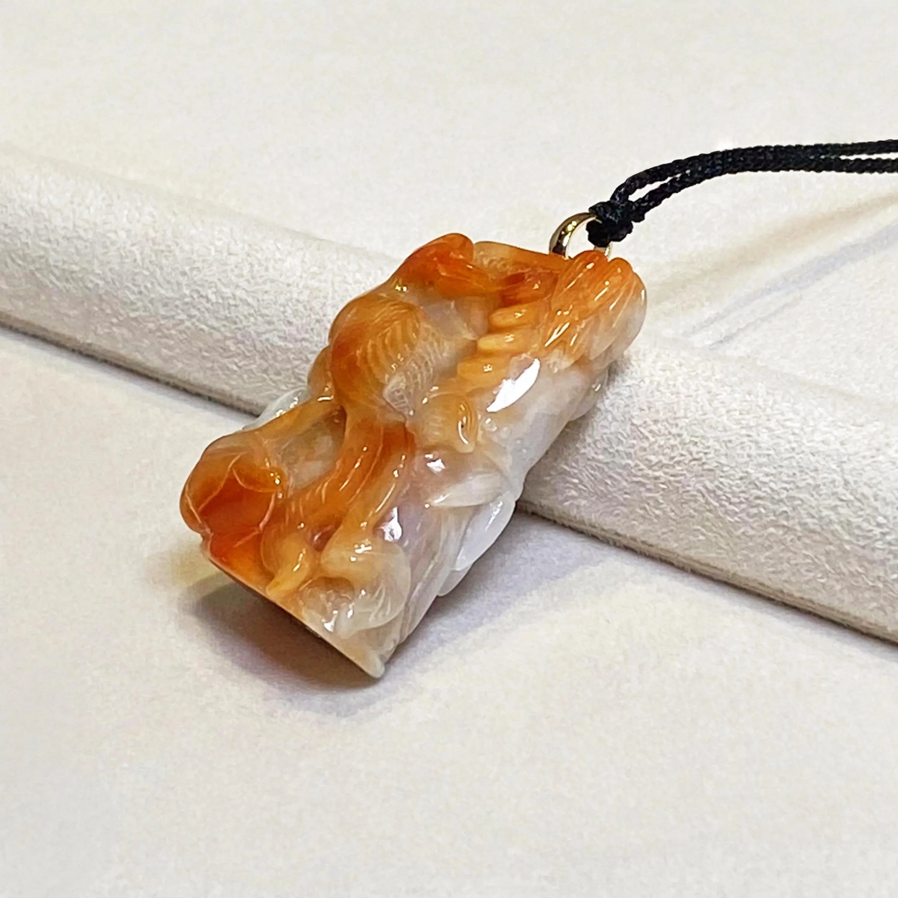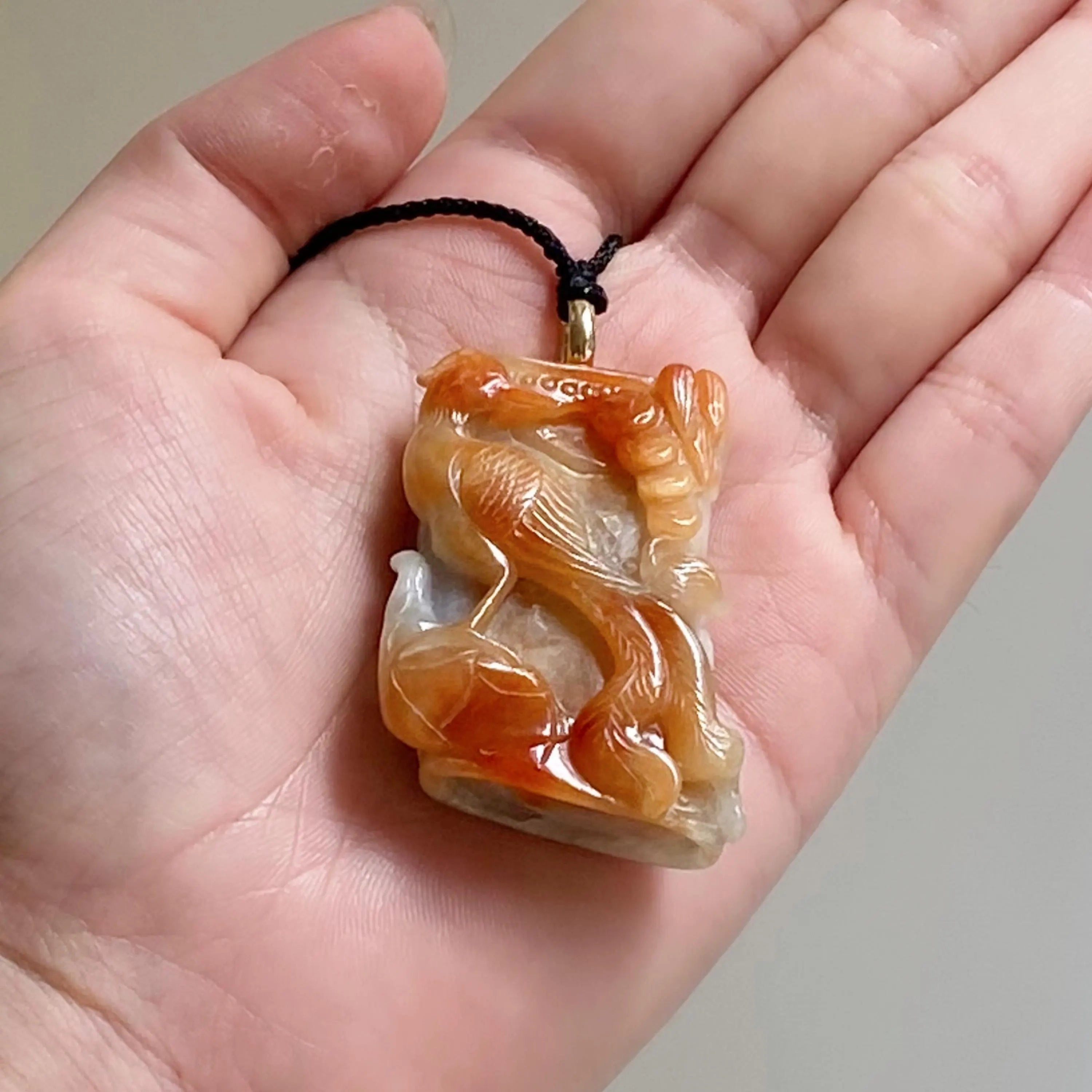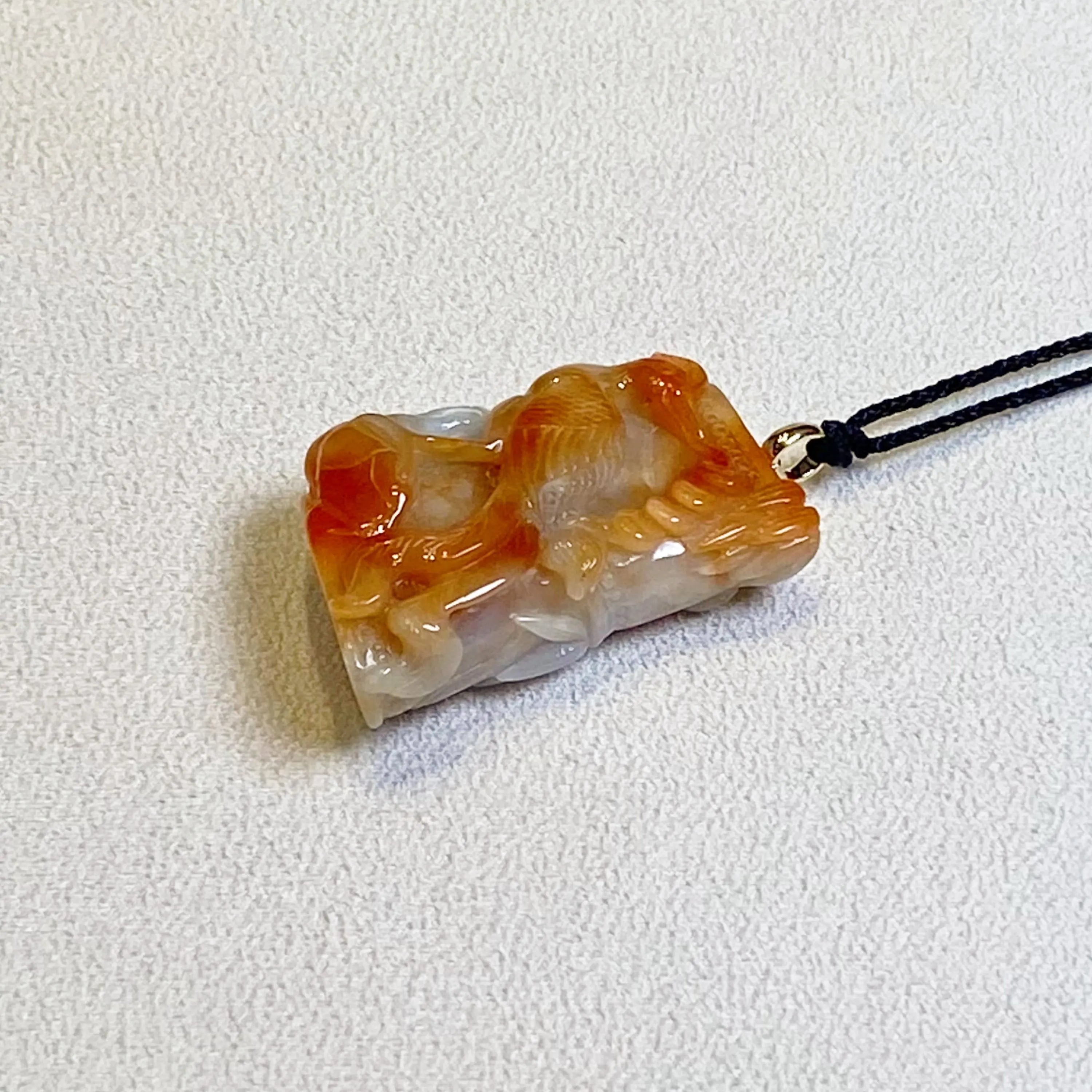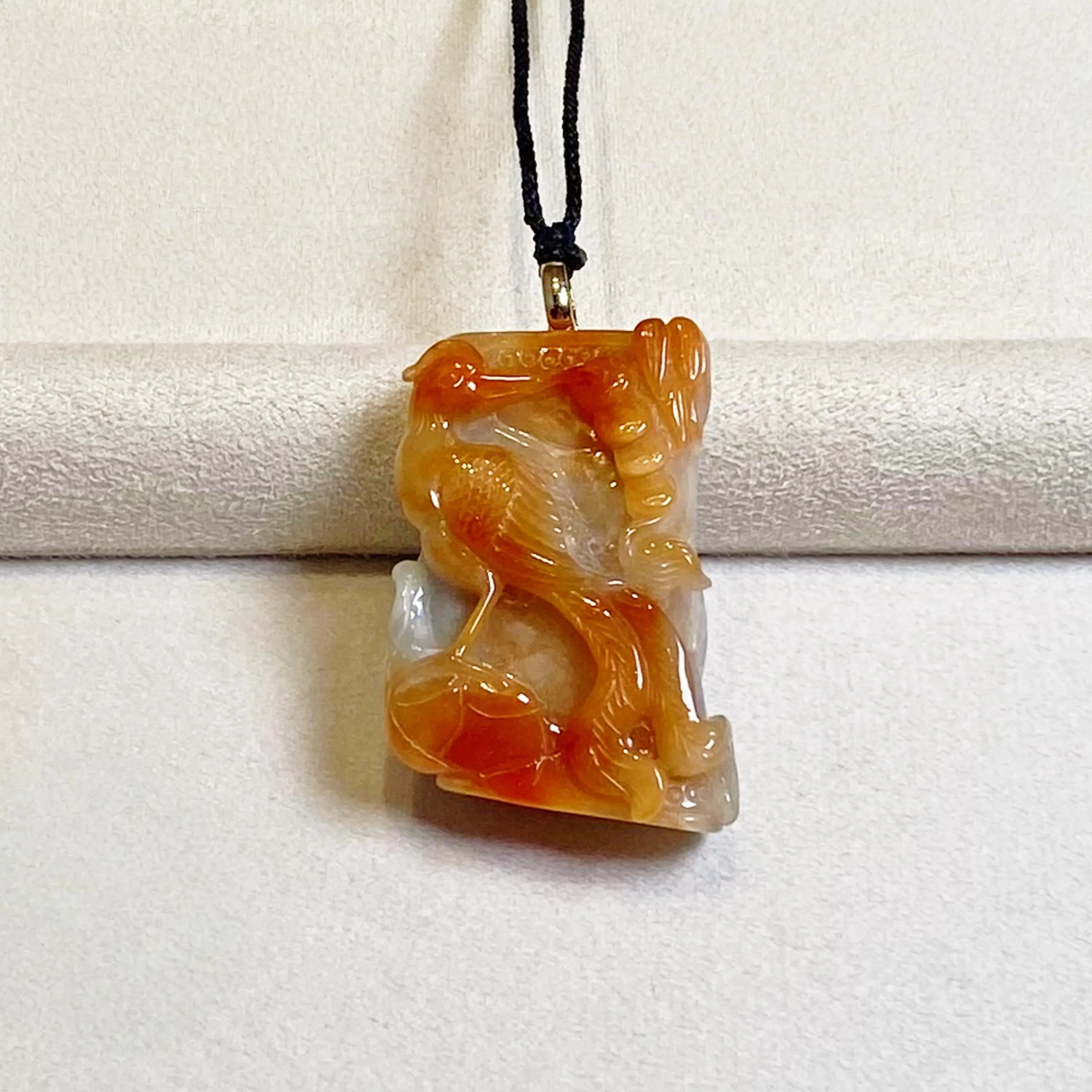 ✅This stunning jade pendant showcases natural untreated Burmese jadeite in vibrant orangy-brown hues, featuring an intricately carved phoenix that exudes grace, vitality, and timeless elegance.