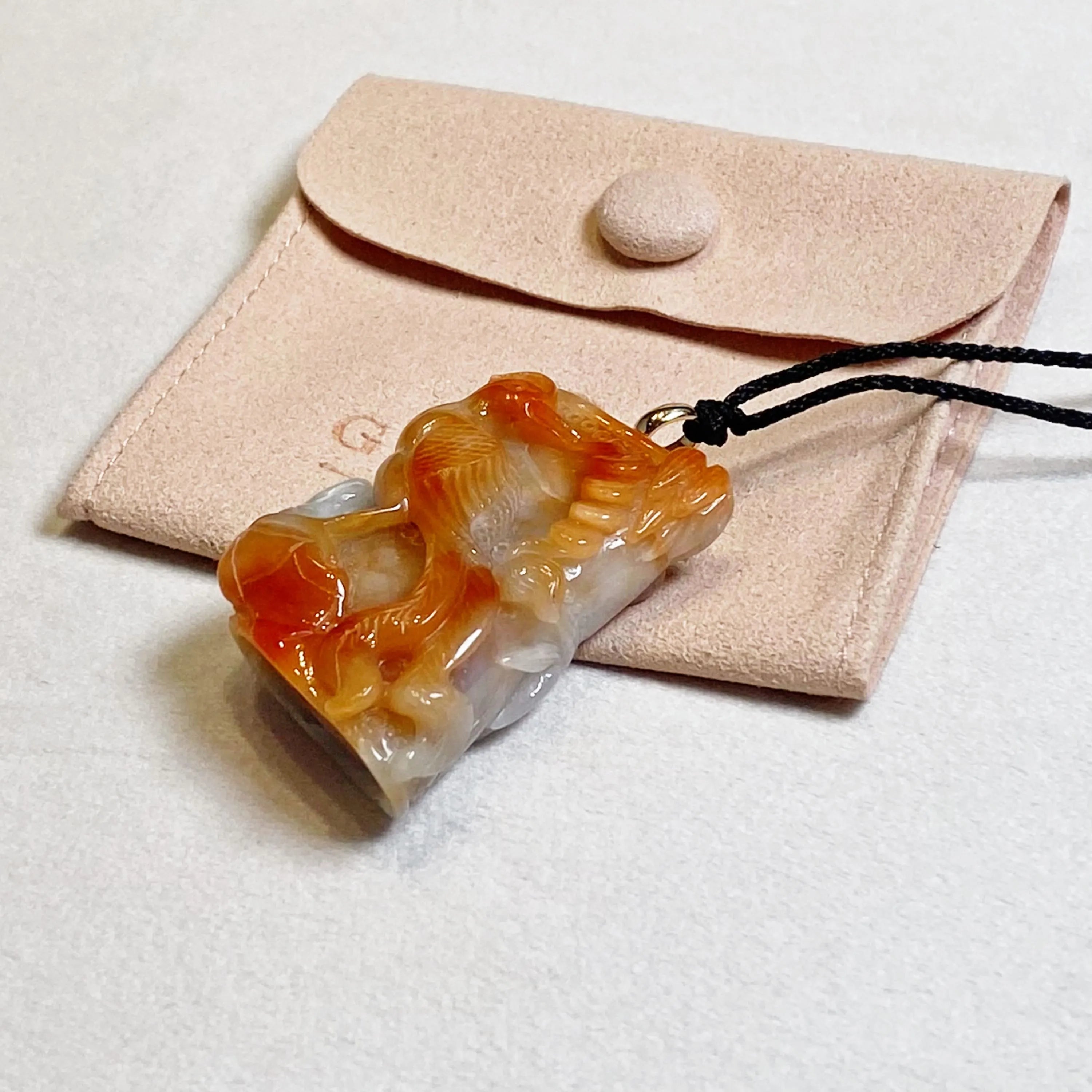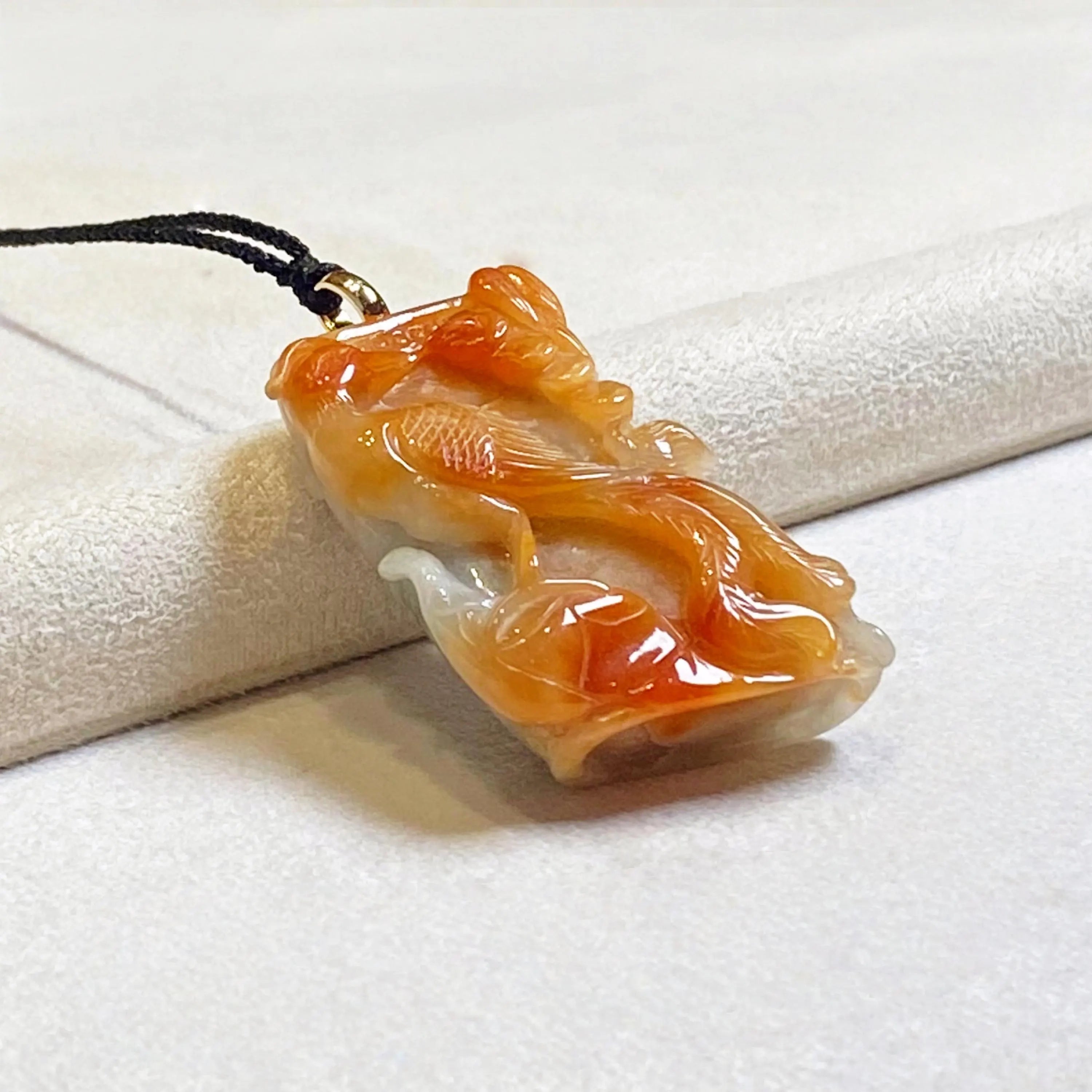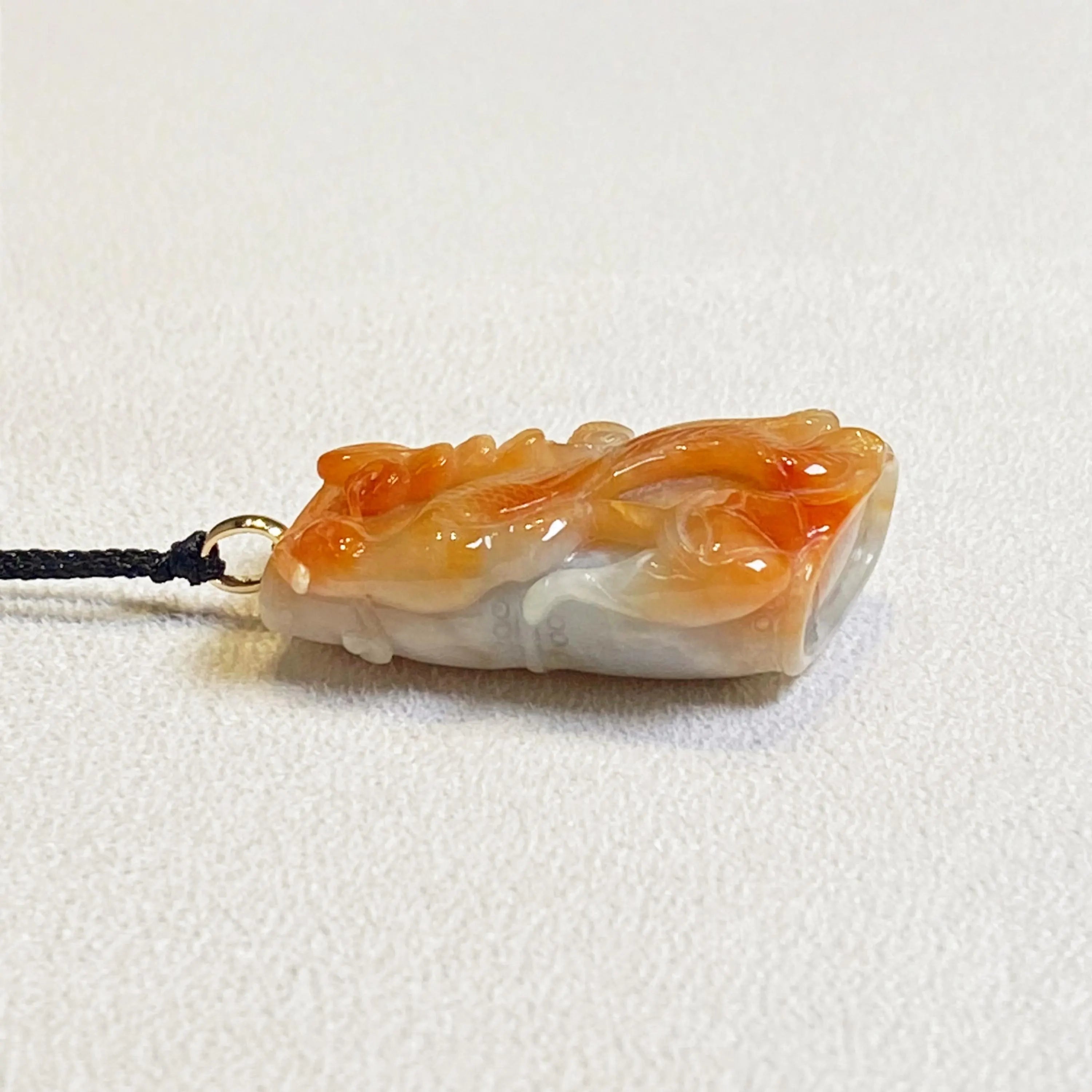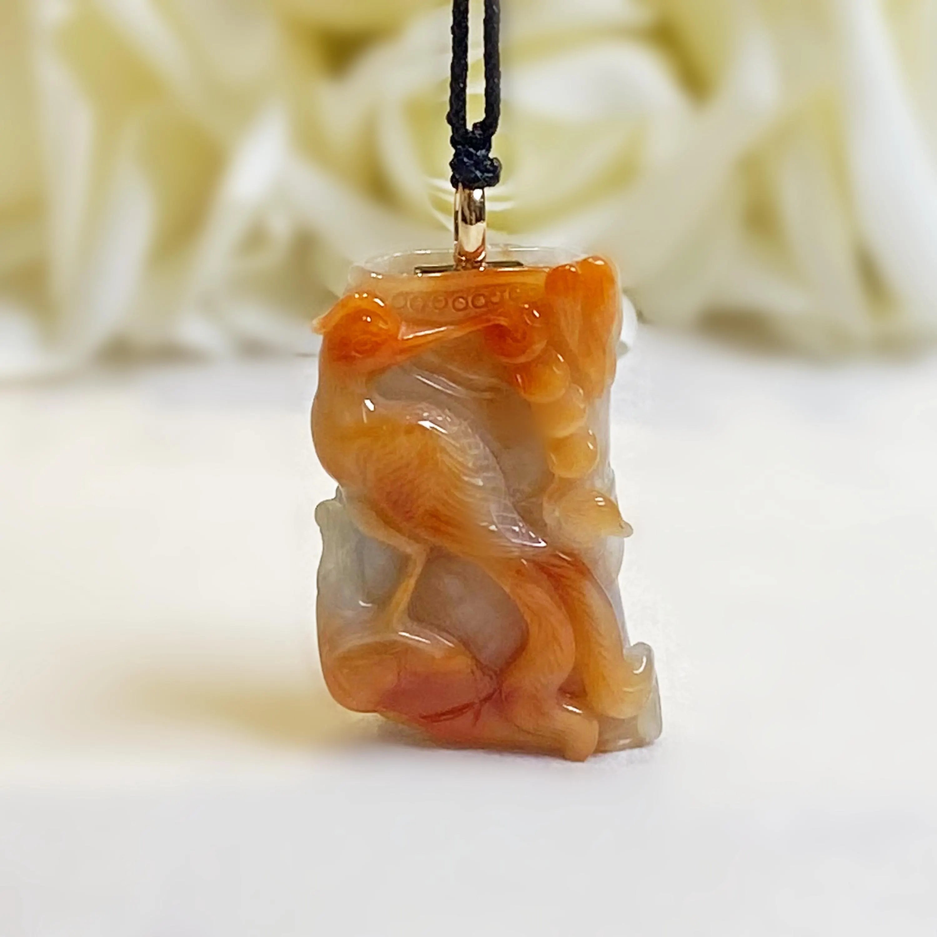 ✅This stunning jade pendant showcases natural untreated Burmese jadeite in vibrant orangy-brown hues, featuring an intricately carved phoenix that exudes grace, vitality, and timeless elegance.