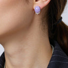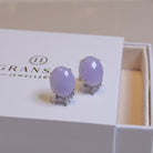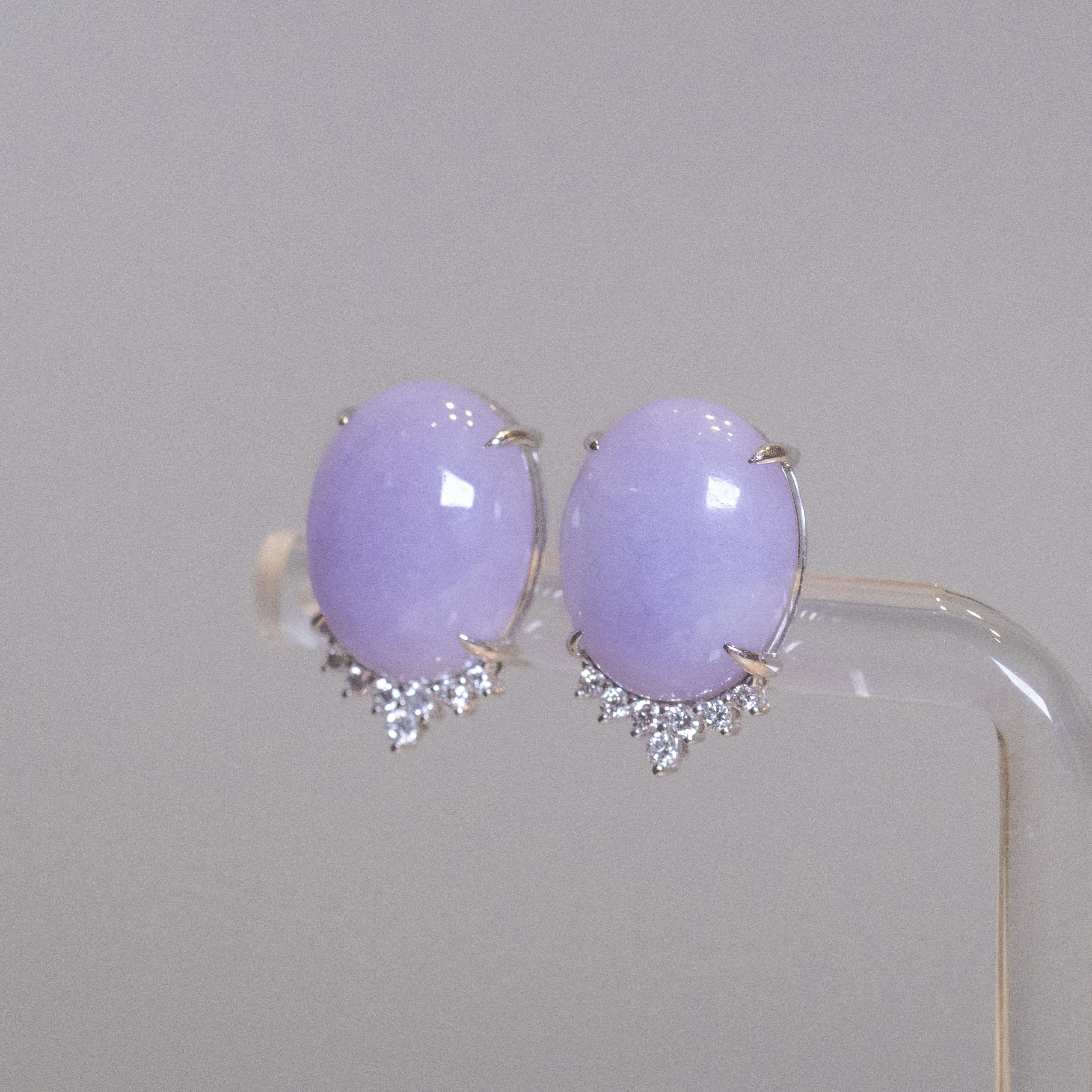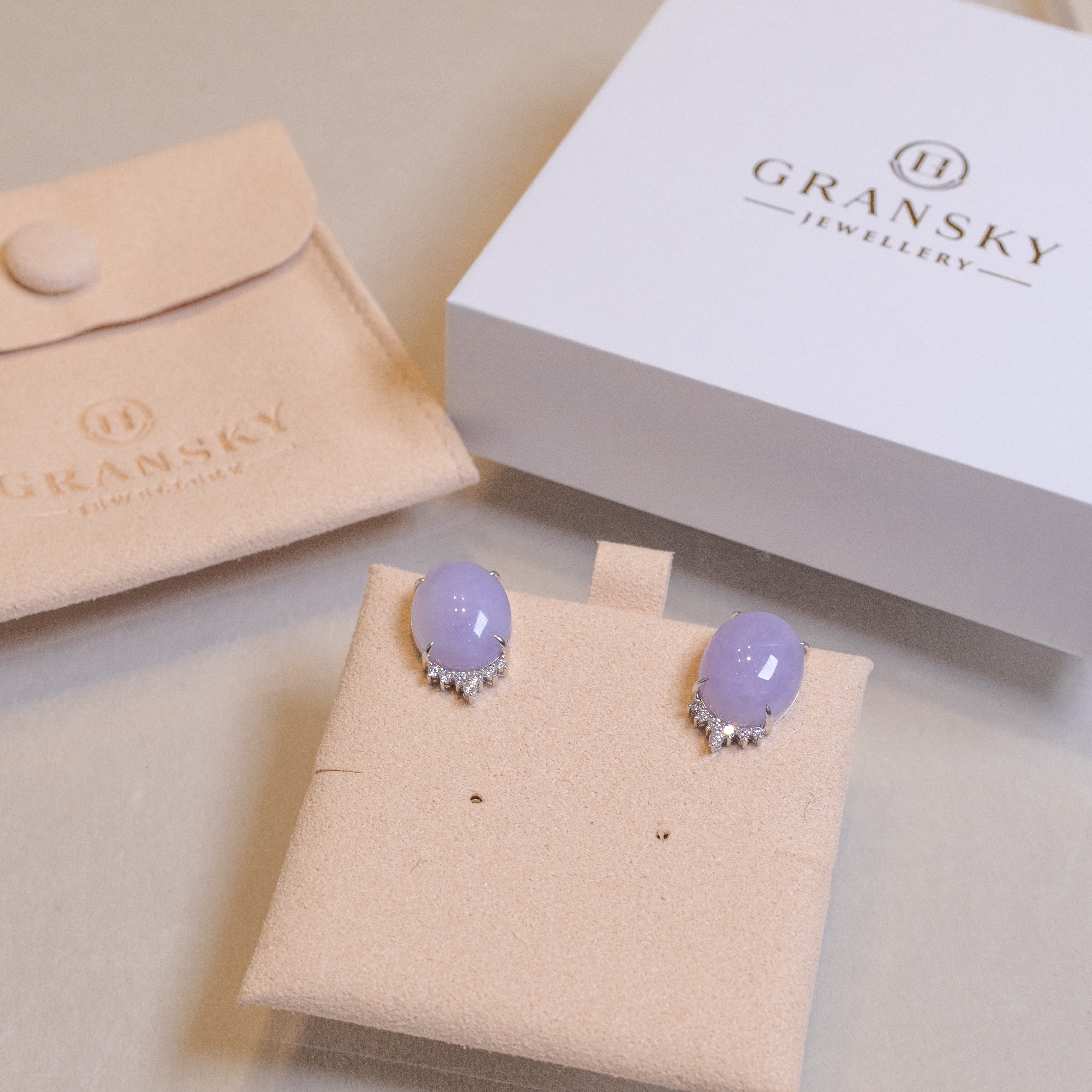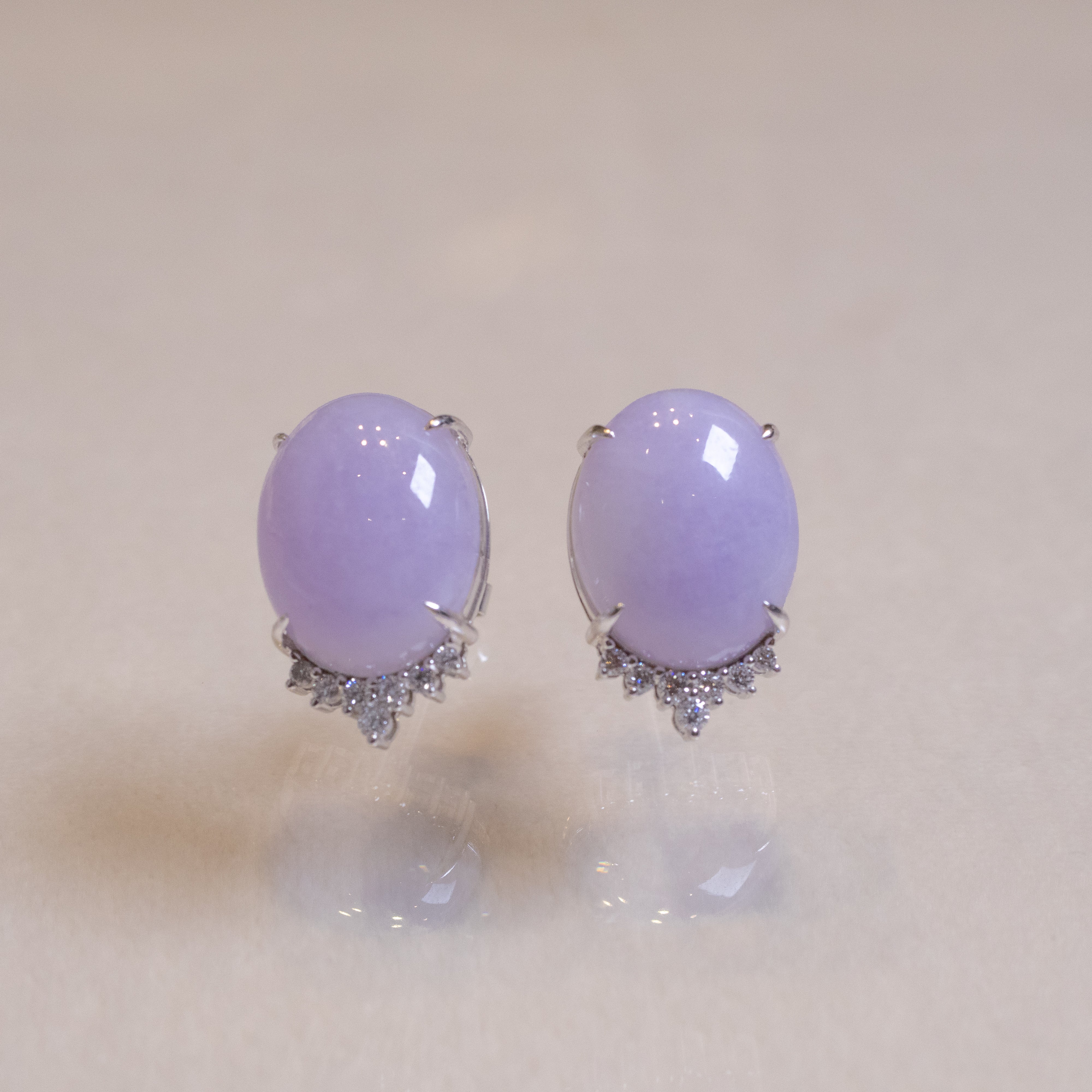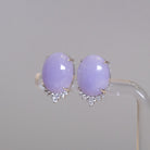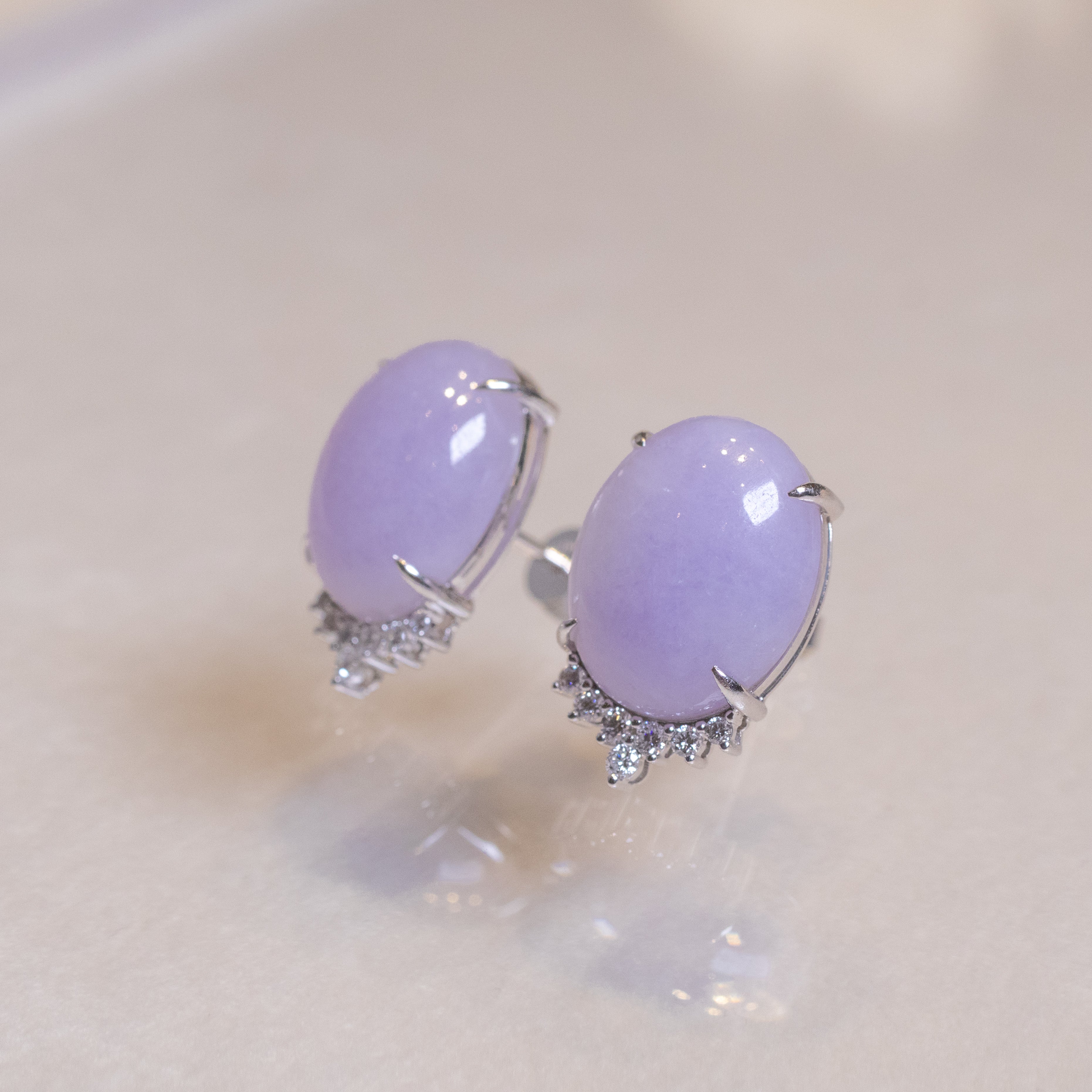 Exquisite Purple Jadeite Stud 18K White Gold Earrings & Diamonds – Genuine Burmese Jadeite