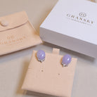 ✅A stunning blend of natural beauty and timeless elegance, these purple cabochon natural Type A jadeite stud earrings are set in lustrous 18K white gold. Sourced from premium Burmese jadeite, the deep purple hues radiate sophistication, making them a captivating addition to any jewelry collection.