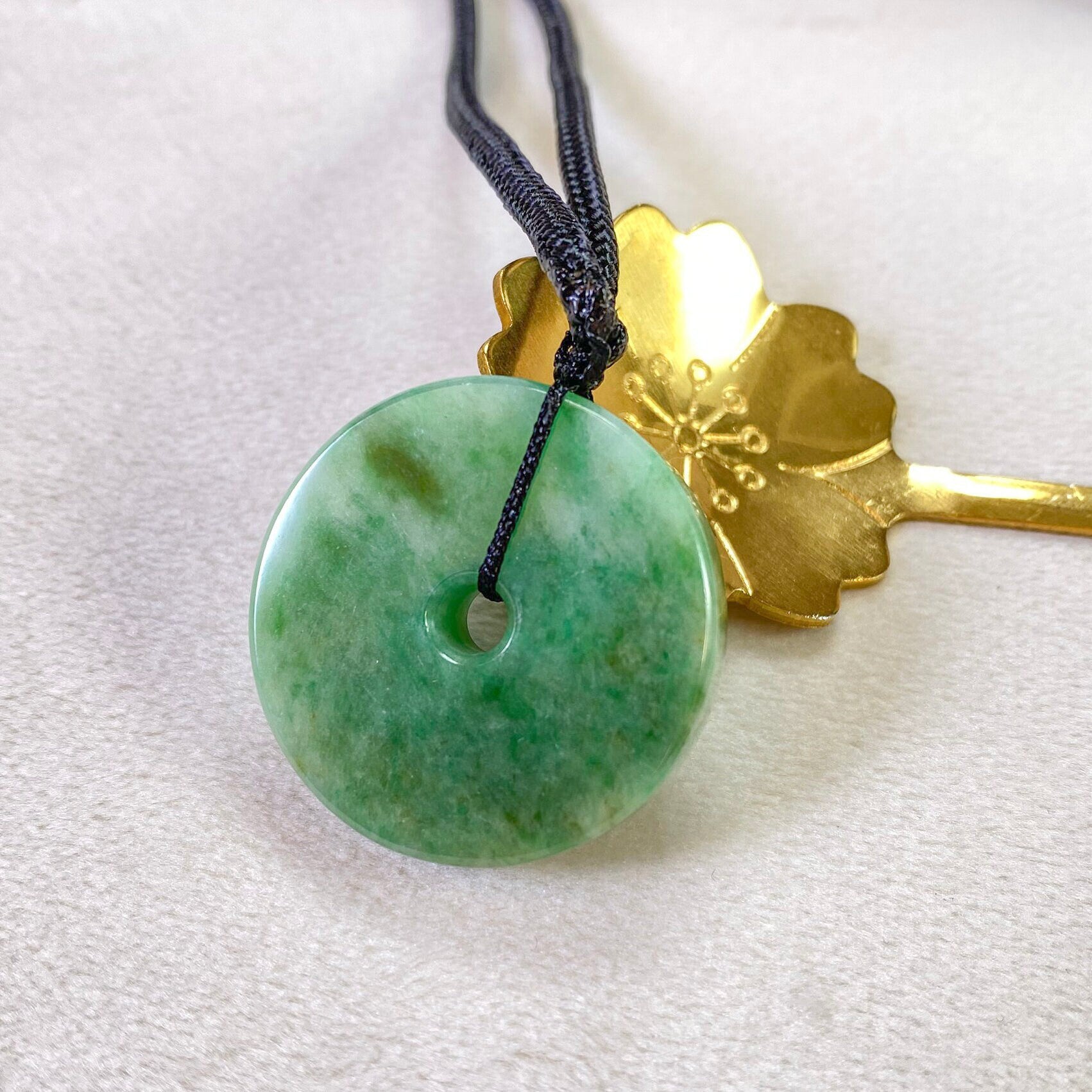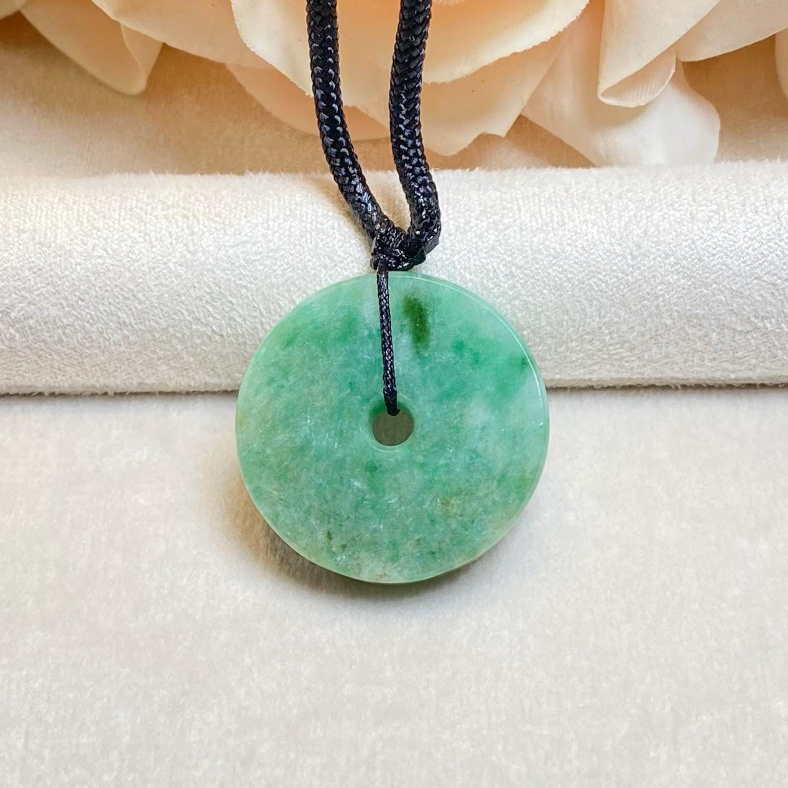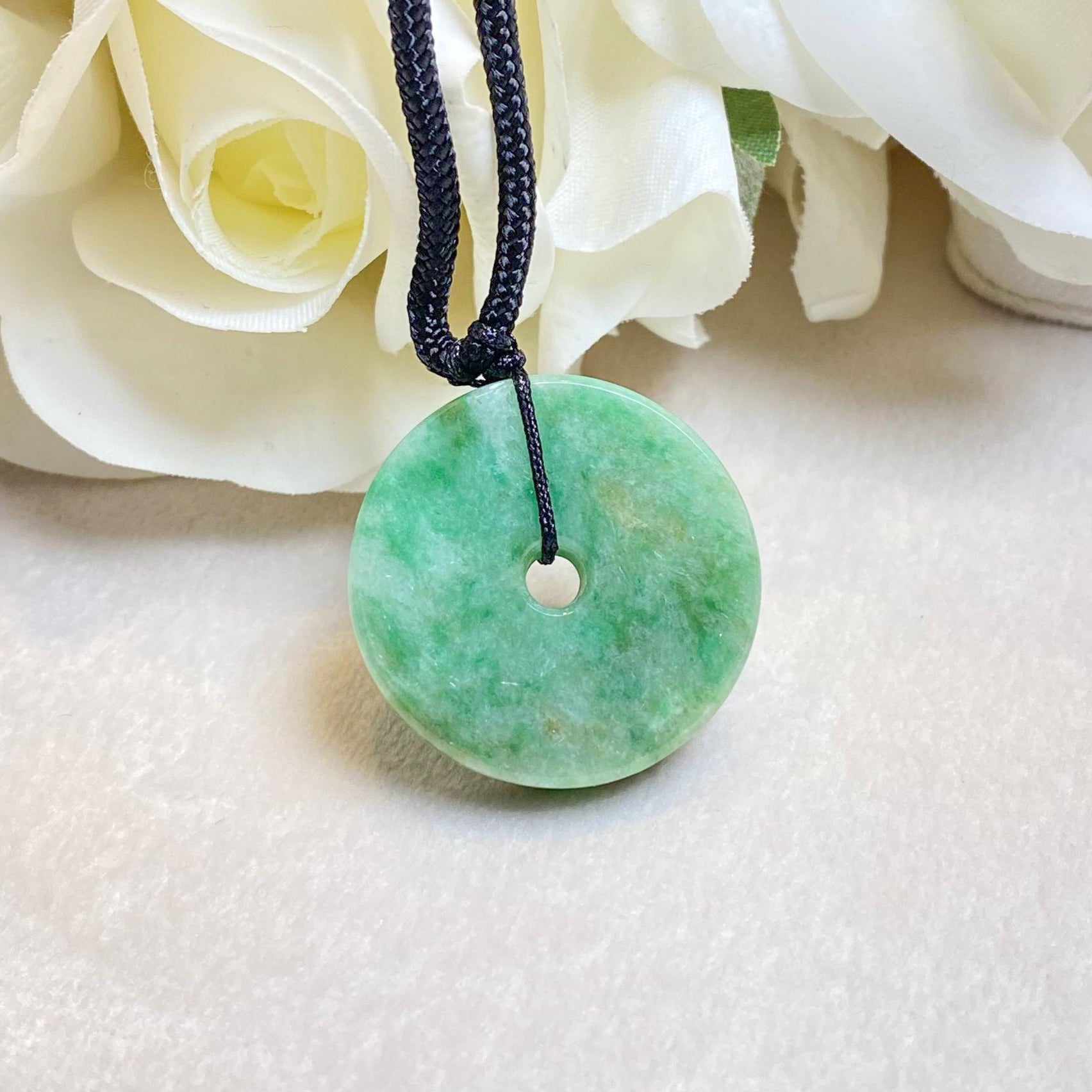 This beautifully crafted pendant features a round donut shape in apple green jade, showcasing a captivating gradient color distribution that transitions smoothly across the piece. Renowned for its calming and protective properties, this jade pendant promotes harmony and balance, making it a perfect accessory for everyday wear. This exquisite piece not only enhances your style but also serves as a meaningful reminder of mindfulness and spiritual connection, making it an ideal gift for someone you cherish.