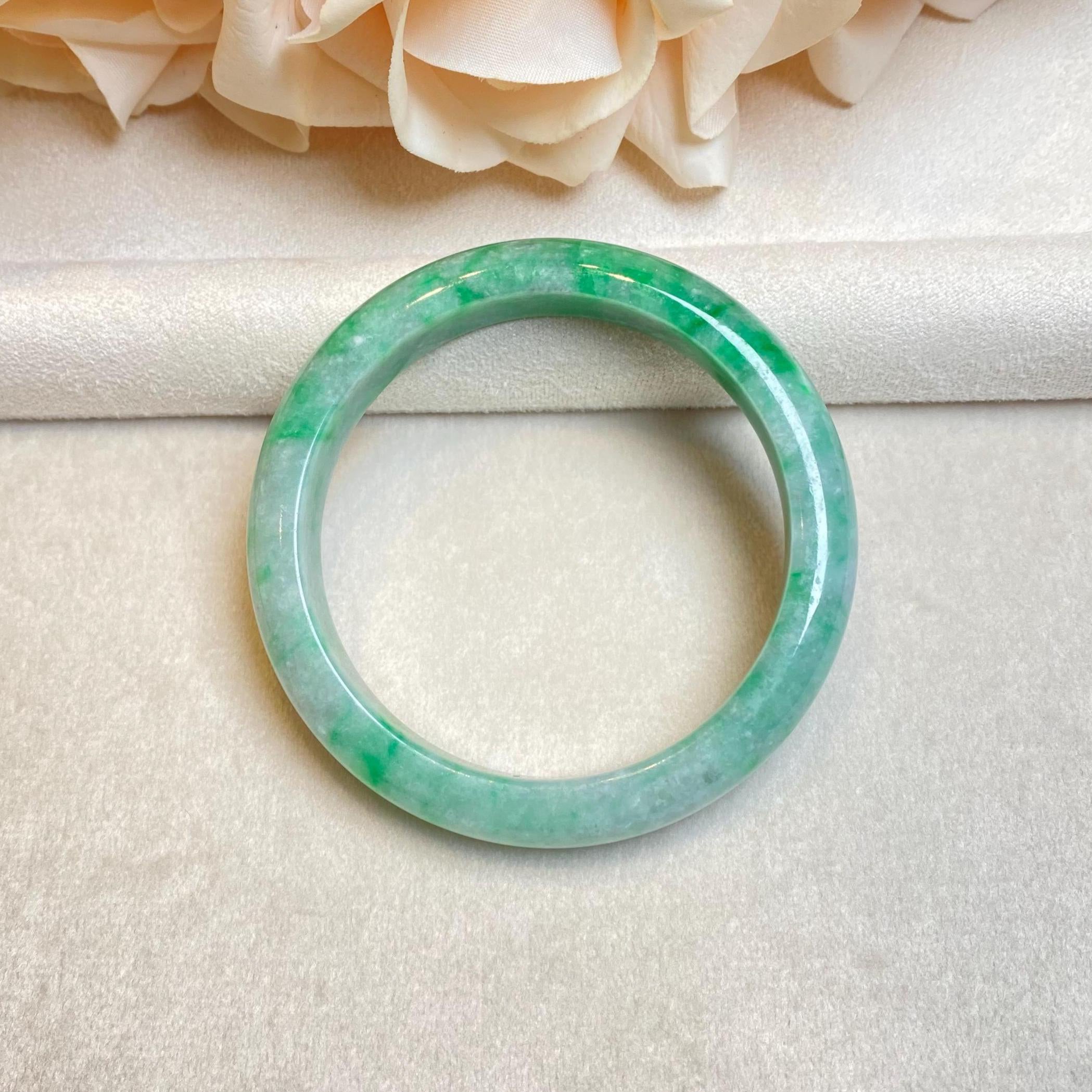 52.6mm Green Color Jadeite Bangle – Untreated Natural Green Burmese Jadeite