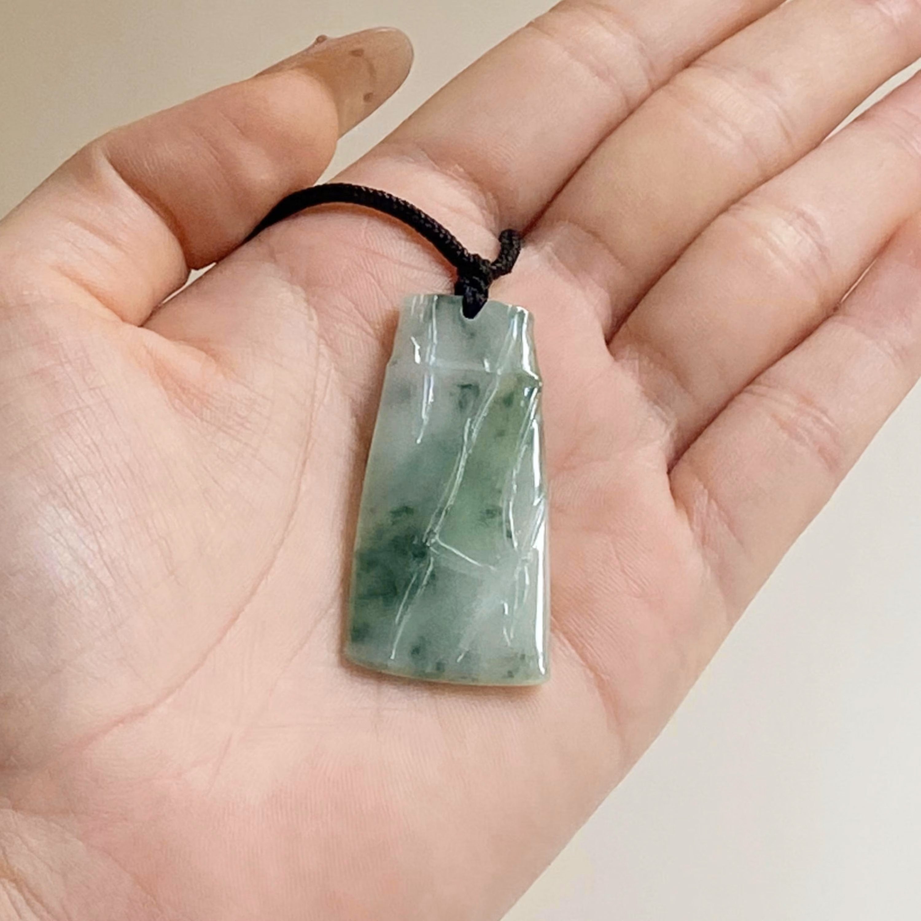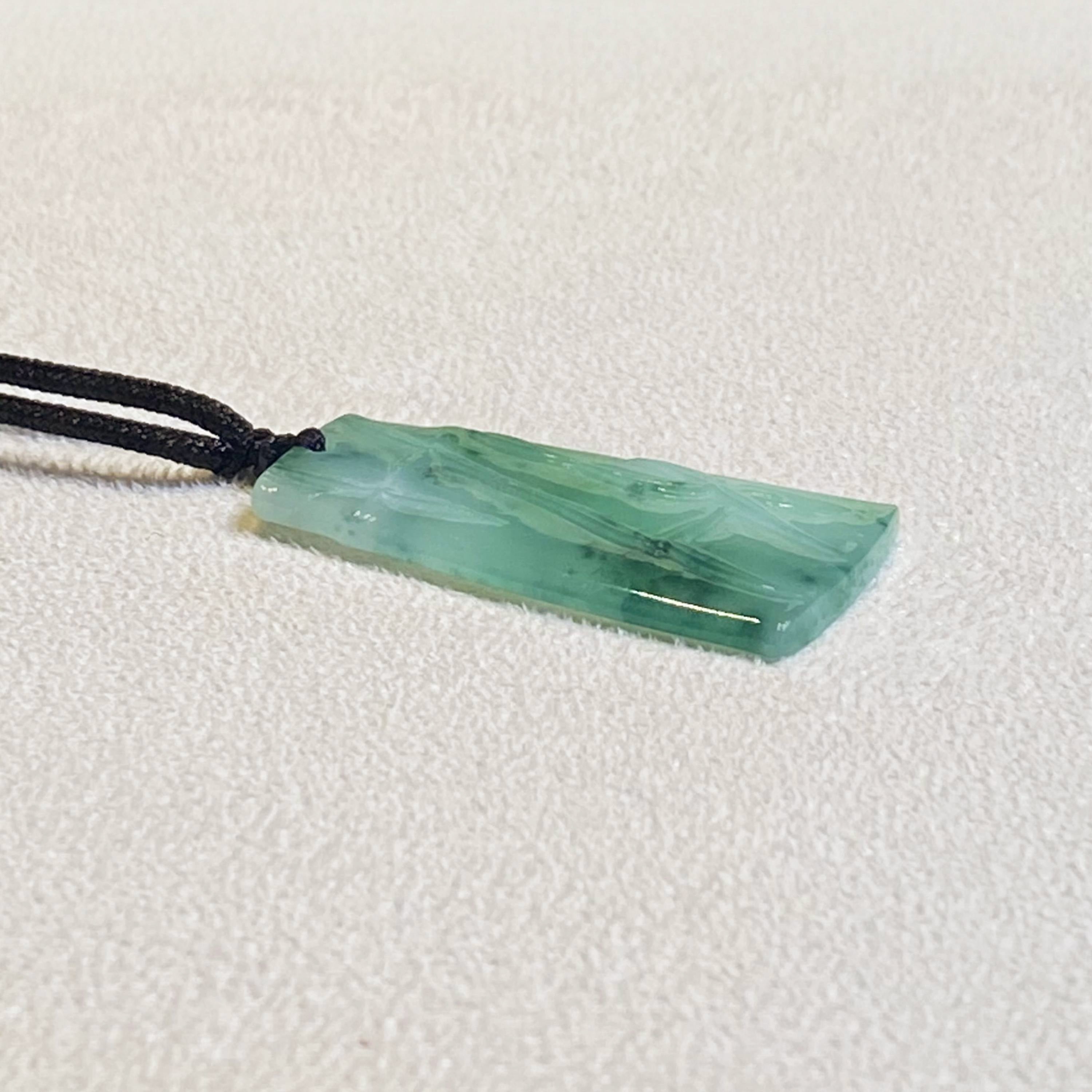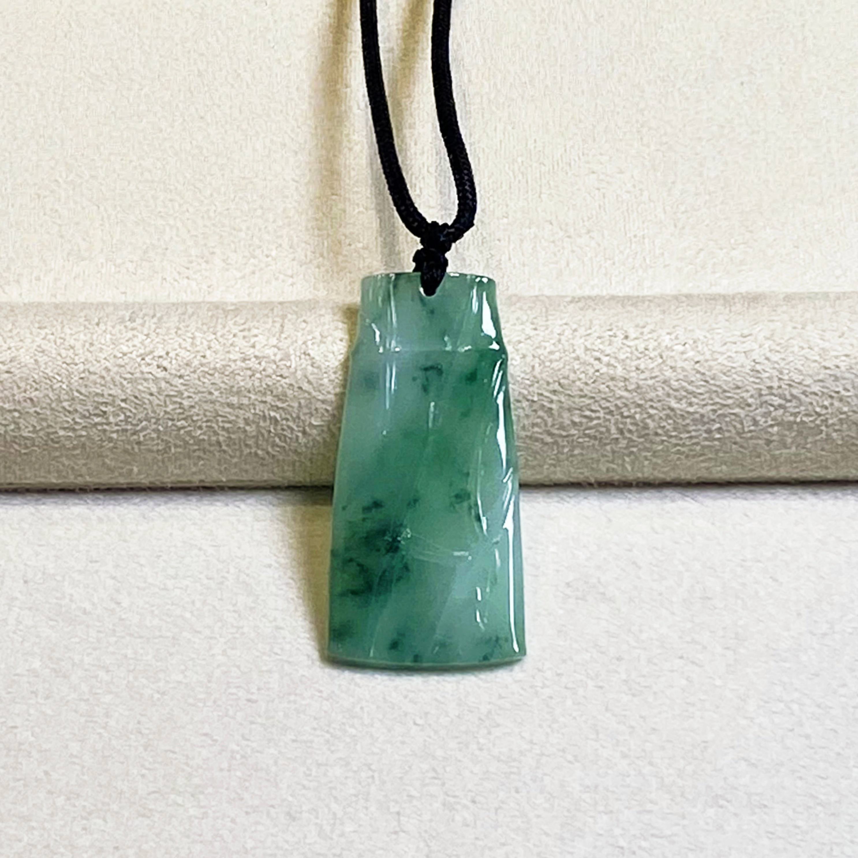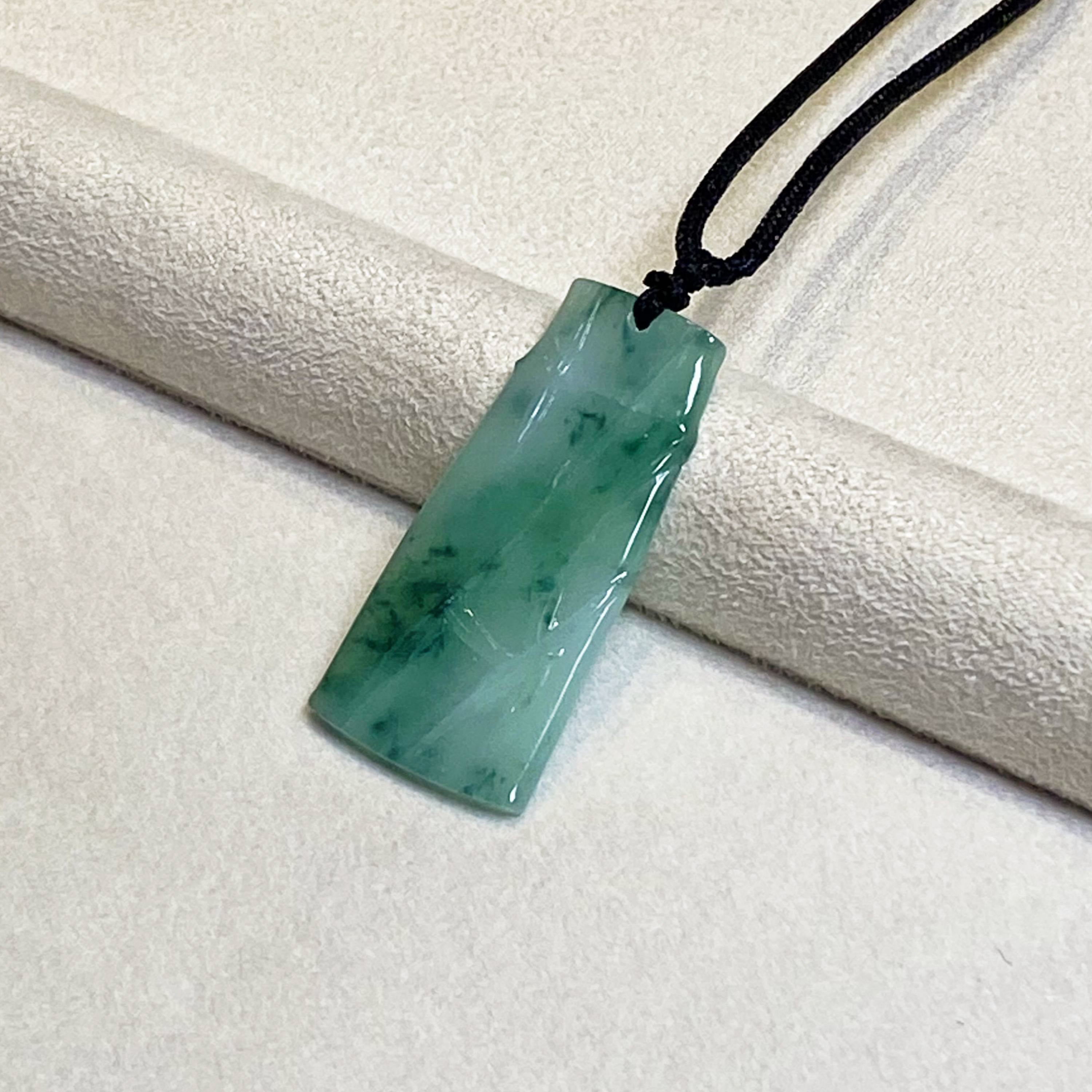 Bright Green Jadeite Bamboo Pendant - Natural Type-A Jade