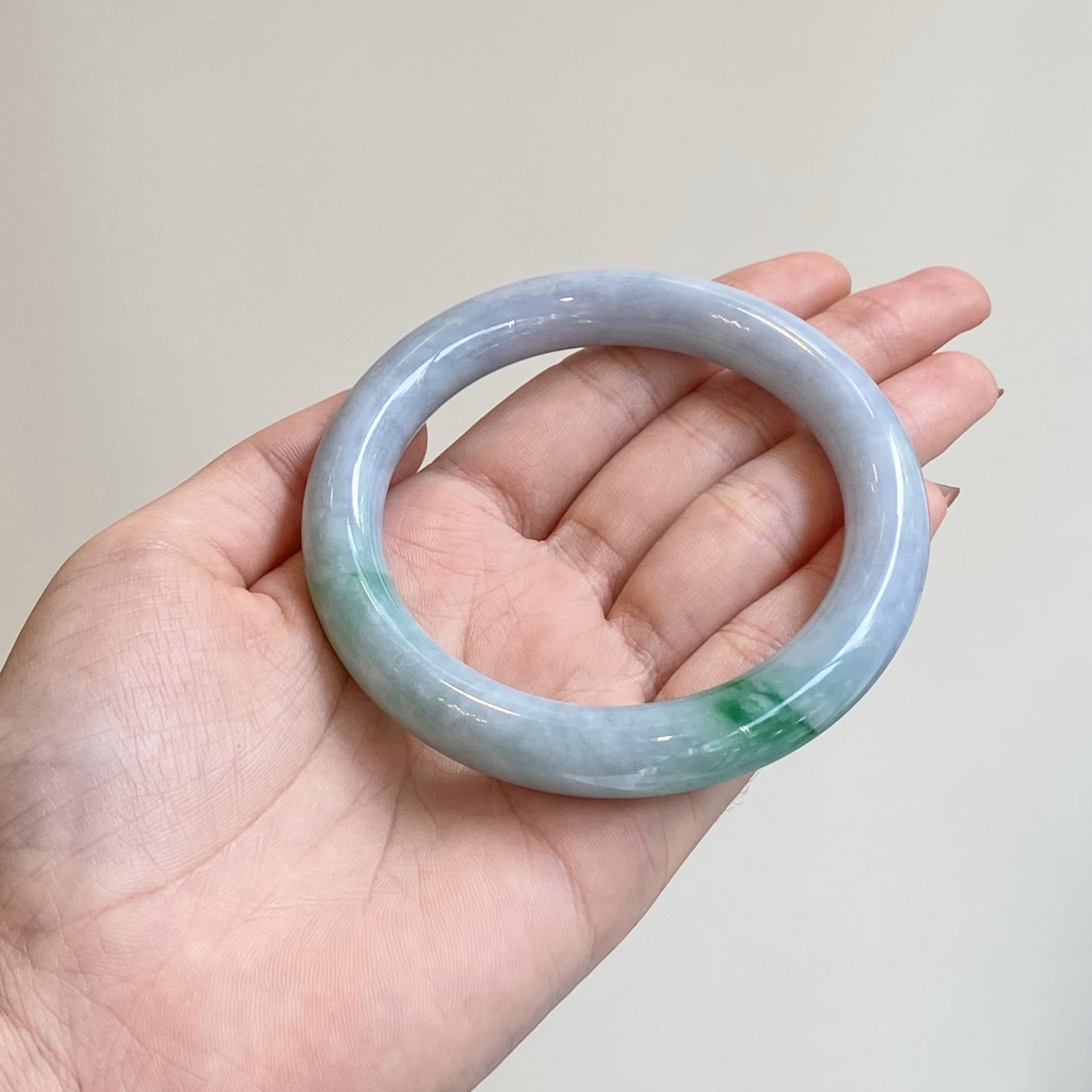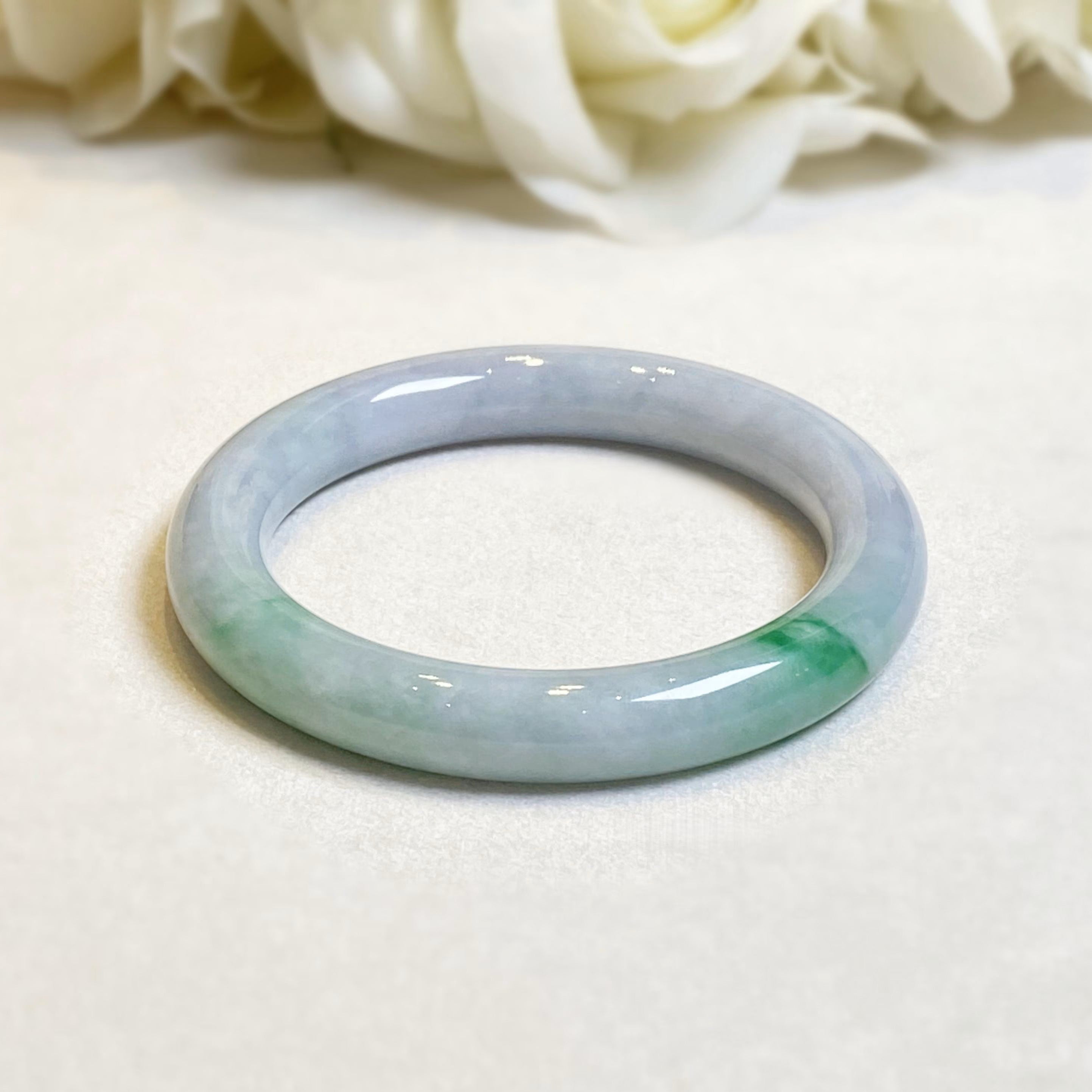 ✅This natural Type-A green jadeite bangle (55.7mm) showcases authentic Burmese jade in a vivid, translucent green hue. Smoothly polished for everyday wear, it embodies calm energy, purity, and timeless elegance. Each piece is one-of-a-kind, crafted to bring harmony and balance to its wearer.
